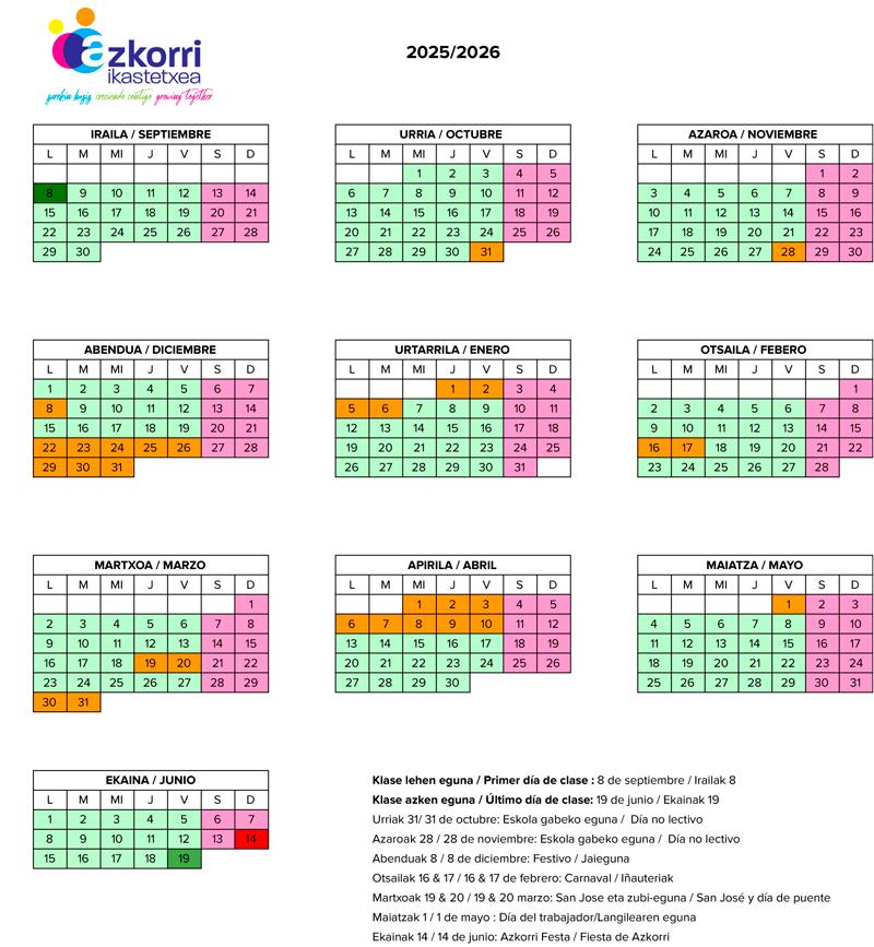 Calendario Lectivo Colegio Azkorri