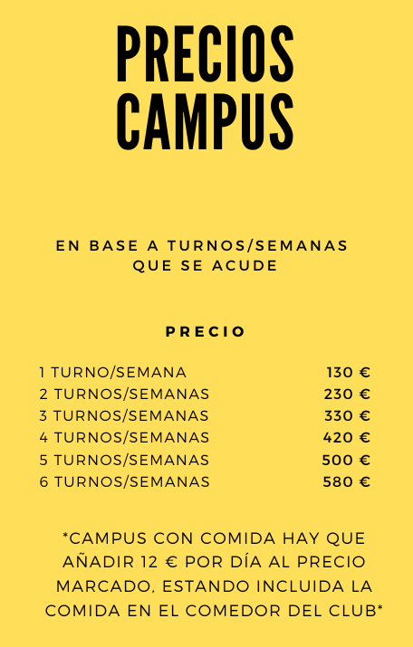 El resto del importe, se girara recibo a los socios desde el club a la finalización del campus (descontando los 30 € enviados de reserva)