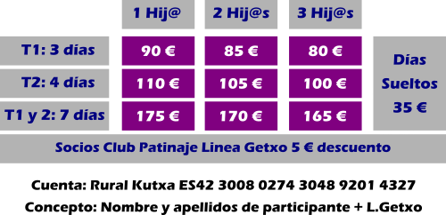 - Opcional clases de Patines 1 hora al día (a partir de 6 años). Necesario traer patines y protecciones